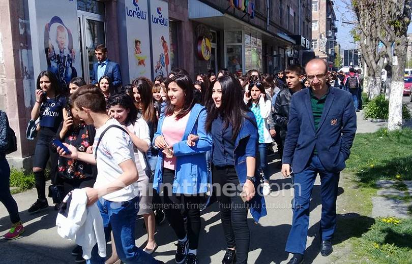 В Ванадзоре сотни студентов проводят забастовку. Они проходят шествием по проспекту Тигран Мец, скандируют призывы «забастовка», «РПА, уходи».
