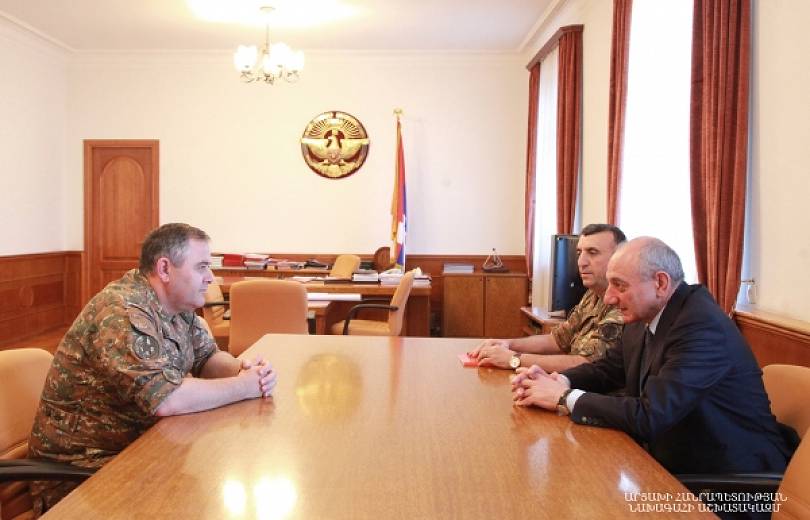 3 июля Президент Республики Арцах Бако Саакян принял начальника Генштаба Вооруженных сил Республики Армения Артака Давтяна. Об этом сообщает пресс-служба аппарата президента Арцаха.