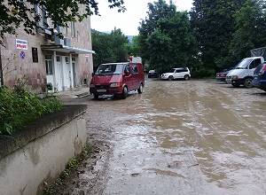 Жители поселка домиков периодически пытаются направить поток дождевых вод в другую сторону, но безрезультатно.